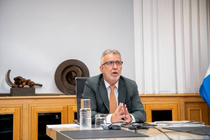 El presidente de Canarias, Ángel Víctor Torres, participó en el día de hoy en la primera reunión de la Comisión Interdepartamental de Coordinación de las Medidas de Reconstrucción y Reactivación de La Palma por los daños causados por el volcán. Ante los representantes de las distintas consejerías que se encargan ya de afrontar los retos que supone el volcán en diversas áreas, así como de empresas como Gesplan, Icavin o Visocan, Torres insistió en la complejidad de la reconstrucción que se desarrollará en los tres municipios afectados (Los Llanos de Aridane, El Paso y Tazacorte), así como del resto de iniciativas para que la Isla Bonita recupere su normalidad cuanto antes. Unas dificultades que se agrandan con el hecho de que aún no se sabe cuándo va a terminar la erupción.