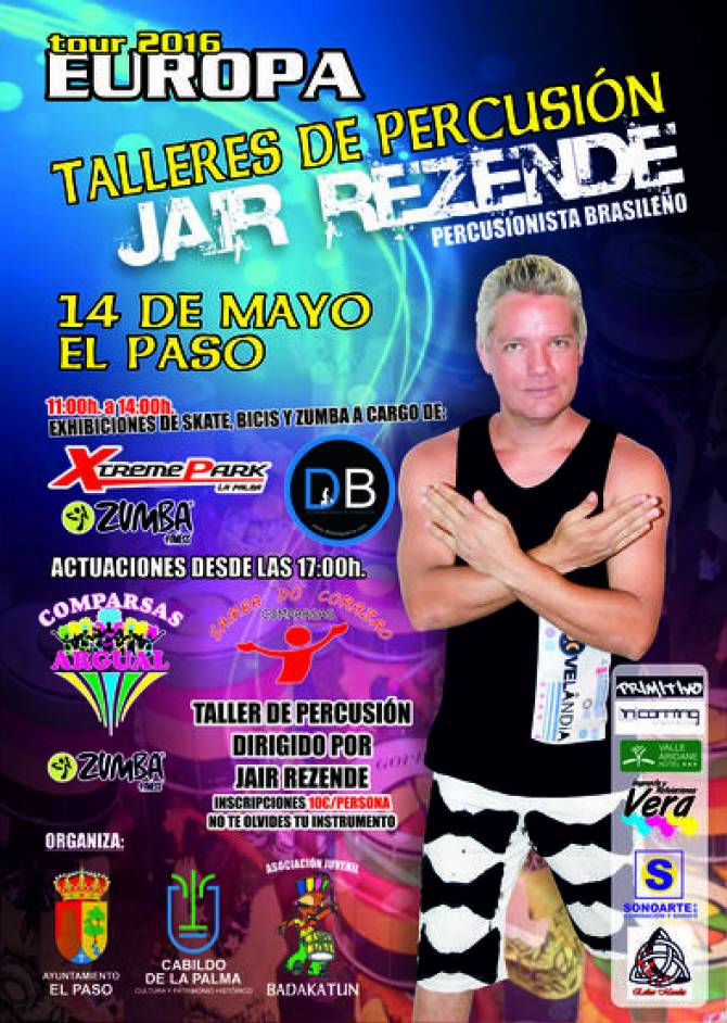 El Ayuntamiento de El Paso, el Cabildo de La Palma y la Asociación Juvenil Badakatun acercan a uno de los mejores percusionistas del mundo al municipio pasense. Visita que Jair Rezende aprovechará para grabar algunos vídeos clips que ayudaran a promocionar La Palma.