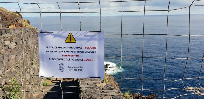 Desde el Ayuntamiento de Puntallana se pide tanto a vecinos como visitantes responsabilidad durante los próximos días, recordando que el acceso a la playa está prohibido y que se trata de trabajos en altura, que suponen un grave y serio riesgo para la seguridad de quienes puedan saltarse dicha prohibición. En este sentido recuerdan que el acceso a la playa está vallado y existe cartelería en diferentes idiomas anunciando la obra.
