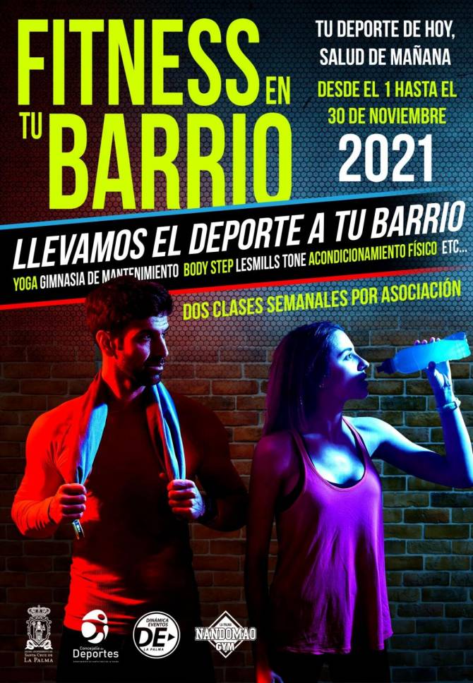 La Concejalía de Deportes del Ayuntamiento de Santa Cruz de La Palma organiza la segunda edición de Fitness en tu Barrio, una iniciativa que, durante todo este mes de noviembre, acercará a las asociaciones vecinales de todos los núcleos un completo programa de gimnasia de mantenimiento pensado para todas las edades. Esta propuesta es gratuita para las personas usuarias y tiene entre sus objetivos despertar el interés por la práctica deportiva, pero también aumentar la oferta de ocio saludable disponible para la ciudadanía y generar nuevos espacios de convivencia en la comunidad.