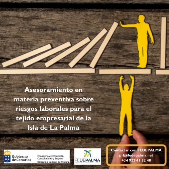 La Dirección General de Trabajo, perteneciente a la Consejería de Economía, Conocimiento y Empleo del Gobierno de Canarias, ha concedido nuevamente a la Federación de Empresarios de La Palma (FEDEPALMA) la subvención para poder desarrollar el servicio de Asesoramiento de PRL vinculado al COVID-19 entre todo el tejido empresarial de la isla.