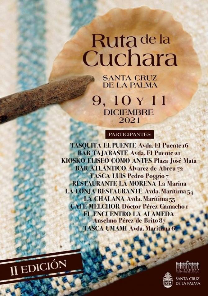 La Concejalía de Mercado del Ayuntamiento de Santa Cruz de La Palma organiza la II edición de la Ruta de la Cuchara, tres días para disfrutar de la mejor oferta gastronómica de temporada en once establecimientos del municipio. Esta iniciativa busca contribuir a consolidar el municipio como uno de los principales referentes gastronómicos de la Isla y constituye una oportunidad para potenciar el producto local y una cocina con identidad propia, de temporada y sostenible.