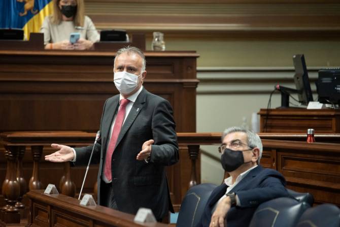 En respuesta a la oposición, el presidente anunció que este viernes se reunirá la comisión técnica que negocia con el Estado la transferencia de las competencias de Costas y que, si todo va como se prevé y se aceptan las peticiones canarias, se consumará el traspaso a principios de 2022.