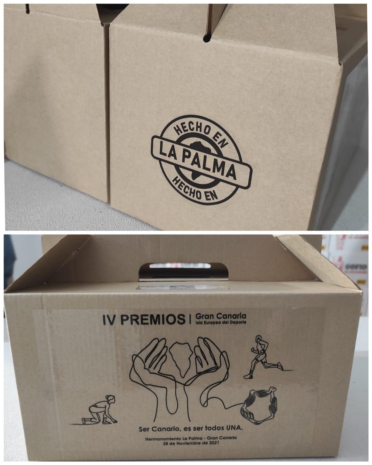 El Instituto Insular de Deporte perteneciente al Cabildo Insular de Gran Canaria quiso tener un detalle más de solidaridad con nuestra isla entregando este año a los asistentes un obsequio compuesto íntegramente de productos palmeros, haciendo un claro guiño hacía la isla de La Palma. El obsequio consistió en una caja compuesta por productos típicos como el gofio, mojo, miel, bienmesabe y plátanos fritos. Además de una pequeña postal que recordaba el momento y la unión de las dos islas.