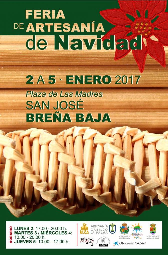 El Cabildo de La Palma, el Ayuntamiento de Breña Baja y el Ayuntamiento de Villa de Mazo coorganizan la Feria de Artesanía de Navidad que se celebrará en la plaza de Las Madres (San José, Breña Baja) entre el 2 y el 5 de enero. Este evento cuenta con la colaboración de la Obra Social de La Caixa y la implicación directa en la organización de las asociaciones de artesanos El Telar y Artemazo.