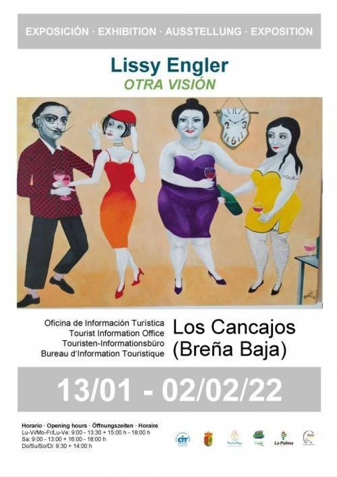 Del 13 de enero al 2 de febrero Lissy Engler nos muestra sus obras de pintura “Otra visión” en la Oficina de Turismo de Los Cancajos y en los horarios habituales de la oficina. Colabora Ayuntamiento de Breña Baja y CIT Tedote, entre otros
