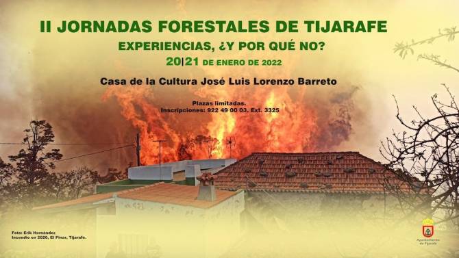 La Casa de la Cultura "José Luis Lorenzo Barreto" de Tijarafe acogerá los próximos 20 y 21 de enero las II Jornadas Forestales de Tijarafe: "Experiencias, ¿y por qué no?", donde se abordarán diversos aspectos relacionados con los incendios forestales y la manera de prevenirlos.