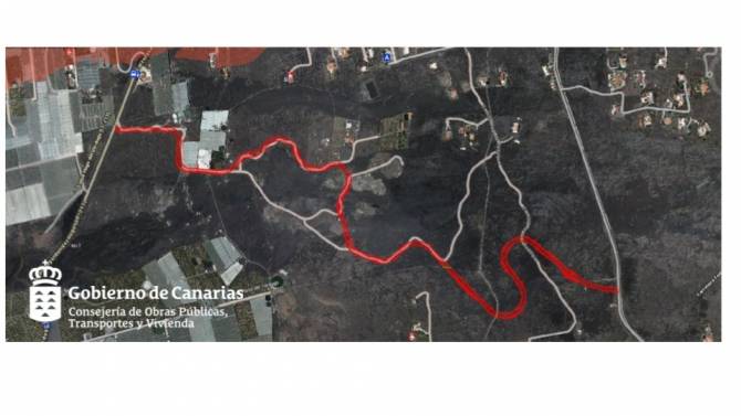 Esta carretera de emergencia tenía un plazo de ejecución de un mes cuando se adjudicó el pasado 8 de noviembre, cuando aún estaba activa la erupción del volcán. Sin embargo, no se ha podido ejecutar en el tiempo previsto ya que la presencia de gases y a la irrupción de la colada que arrasó el cementerio de Las Manchas, solamente se pudo trabajar 5 días en el mes de noviembre. Además, al estar dentro de la zona de exclusión establecida por el PEVOLCA los horarios de trabajo han estado limitados. Una vez que finalizó la erupción y se pudo trabajar con cierta normalidad, se han ejecutado culminado las obras en unas 27 jornadas.