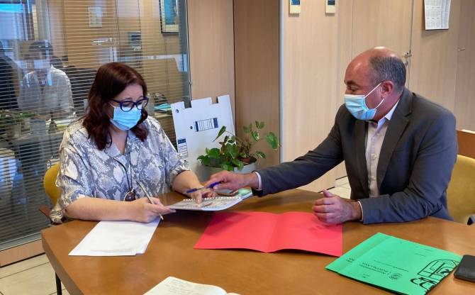 La consejera Manuela de Armas y el alcalde Víctor Guerra rubricaron el documento mediante el cual el consistorio recibirá 100.308,48€ para el proyecto y ejecución de la primera fase de las obras