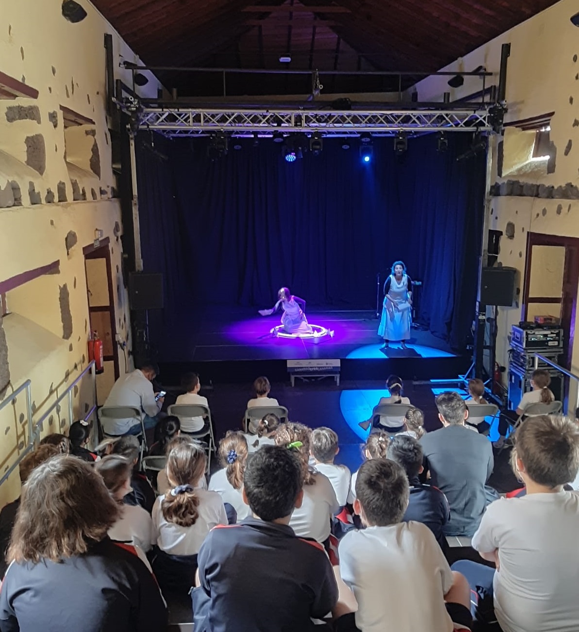Esta semana, el proyecto Menudo Teatro ha vuelto a acercarse a los centros de primaria del municipio, en esta ocasión con La Tangente de lo Imposible, obra creada el año pasado en el seno de los Laboratorios de Creación Artística de El Secadero, por Elena Revuelta y María Buenadicha.