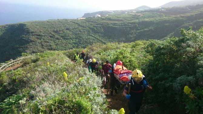 Los Servicios de Emergencias de la isla de La Palma han rescatado a una turista de origen alemán que había sufrido una caída practicando el senderismo en el barranco de Nogales, en Puntallana.