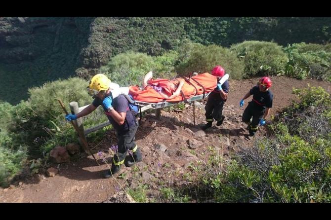 La mujer, de 65 años, presentaba una posible fractura de tobillo, teniendo que ser rescatado y trasladado por los efectivos del Cuerpo de Bomberos, con base en el Parque de San Andrés y Sauces, hasta la zona a la que tenía acceso la ambulancia.