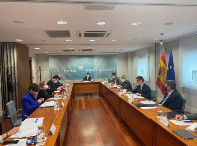 El ministro de la Presidencia, Relaciones con las Cortes y Memoria Democrática, Félix Bolaños, ha presidido una reunión de la Comisión Interministerial para la reconstrucción de La Palma, a la que han asistido la vicepresidenta Primera del Gobierno, Nadia Calviño; el ministro del Interior, Fernando Grande-Marlaska; la ministra de Política Territorial, Isabel Rodríguez; el ministro de Inclusión, Seguridad Social y Migraciones, José Luis Escrivá, y representantes de los ministerios de Hacienda, Trabajo, Transportes, Industria, Agricultura y Transición Ecológica.