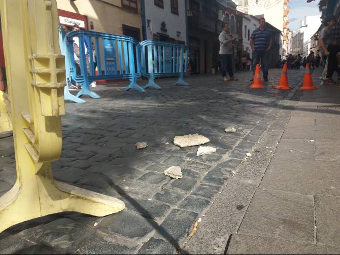 La caída de cascotes de un edificio hace intransitable el comienzo de la Calle Real capitalina