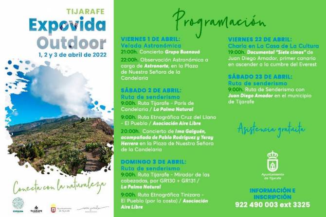 Saray Domínguez, concejala de Medio Ambiente del Ayuntamiento de Tijarafe, señala que “tras la realización el año pasado de una Expovida marcada por las restricciones de la COVID-19, este año todo apunta a que podremos disfrutar de unos días de naturaleza y música con menos limitaciones, pero con seguridad. A todos los vecinos del municipio y, por supuesto, a todo el que quiera acompañarnos, les animo a asistir a un evento único en la Isla”.
