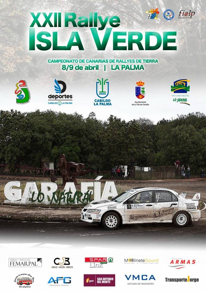 El XXII Rallye Isla Verde cuenta con el apoyo de la Consejería de Deportes del Cabildo de La Palma y el Ayuntamiento de la Villa de Garafía, además de las empresas privadas formadas por Femarpal, Carlos Jorge Barreto, Spar, Transporte Jorge, Molinete Sound – Sonido e Iluminación, Bar-Cafetería Estación de Guaguas Llano Negro, AFG Ingeniería Técnica, VMCA Estudio de Ingeniería, Estación TGas San Antonio del Monte y Naviera Armas.
