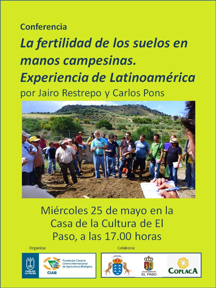 El ingeniero agrónomo de nacionalidad brasileña, Jairo Restrepo, considerado por muchos como el máximo exponente en el desarrollo de la agricultura ecológica, ofrecerá el próximo día 25 de mayo, acompañado por su colaborador Carlos Pons, una conferencia en La Palma titulada La fertilidad del suelo en manos campesinas, experiencias desde Latinoamérica.