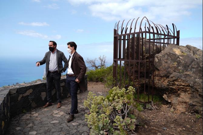 El director general de Infraestructura Turística del Gobierno de Canarias, Fernando Miñarro Mena, se ha desplazado hasta Tijarafe, donde, acompañado por el alcalde del municipio, Marcos Lorenzo, y la concejala de Turismo, Diana Lorenzo, ha visitado el jardín vertical, el parque El Largar y el futuro centro de promoción turística.