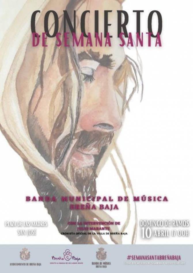 La Banda Municipal de Música de Breña Baja ofrecerá un Concierto de Semana Santa el domingo de Ramos 10 de abril a las 17.00 hs en la Plaza de Las Madres de San José, promovido por la Concejalía de Cultura del Ayuntamiento de Breña Baja y presentado por D. Julio Marante Díaz, Crónista Oficial de la Muy Noble y Honorable Villa de Breña Baja y dirección musical de D. Pablo Arrocha Morales.