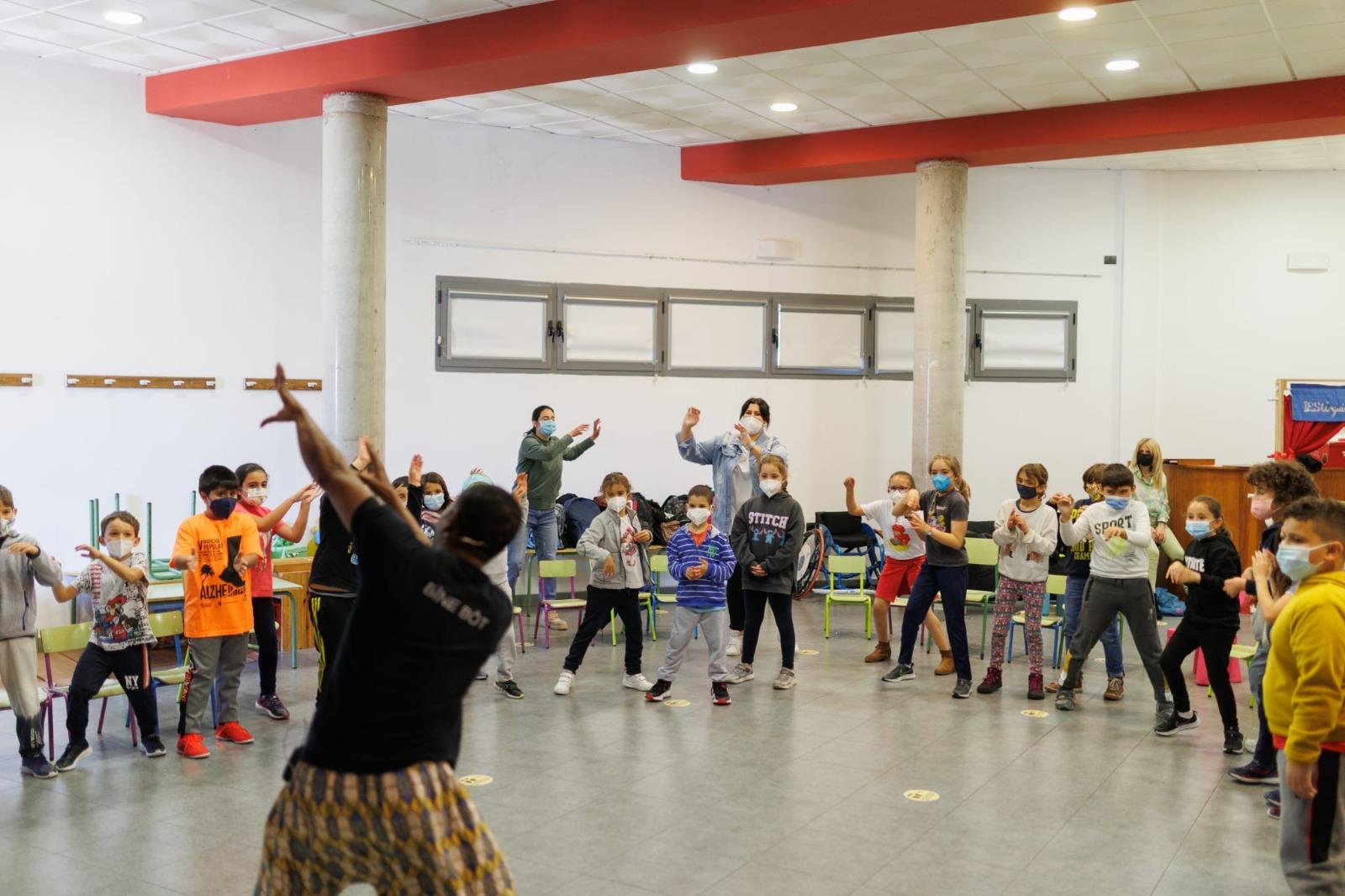 Por la mañana, Gorsy Edú se acercó al Espacio Cultural El Retamar, donde en la actualidad se encuentra ubicado el CEIP La Laguna, para mostrar en dos pases, primero para alumnado de infantil, y posteriormente de primaria, percusión corporal, juegos rítmicos vocales, movimientos rítmicos, improvisación rítmica, escucha activa y presentación y ejecución de instrumentos de percusión africanos.