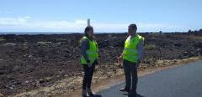 Pérez Corujo, la finalización de las obras de la pista la Cangrejera - La Salemera y ha explicado que "estamos repavimentando el firme de estos caminos que presentaban un avanzado estado de envejecimiento debido a la intensidad de tráfico y al tiempo transcurrido desde su última repavimentación".