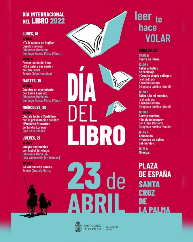 El Ayuntamiento de Santa Cruz de La Palma se vuelca con la celebración del Día Internacional del Libro, que tiene lugar cada 23 de abril, y prepara un amplio programa de actividades a través de la concejalía de Cultura y el área de Bibliotecas Municipales.