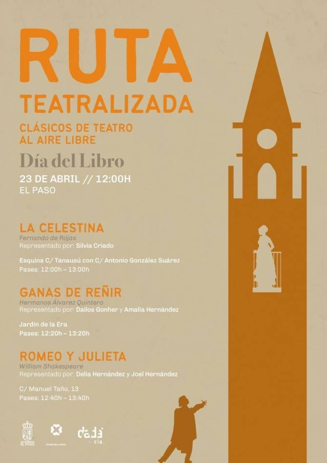 El Ayuntamiento de El Paso organiza la primera Ruta Teatralizada por las principales calles del municipio, se representarán dos obras de teatro clásico y un monólogo. Una actividad novedosa que se plantea en el marco del Día del Libro.
