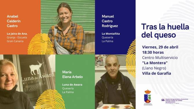 El próximo viernes 29, a las seis y media de la tarde, tendrá lugar, en el centro multiservicios La Montera, en el barrio de Llano Negro de la Villa de Garafía la celebración del encuentro Tras la huella del queso. Esta mesa redonda forma parte de la primera edición del "Mes del Queso", que se promueve en coordinación con la Cátedra de Agroturismo y Enoturismo de Canarias del Instituto Canario de Calidad Agroalimentaria y de la Universidad de La Laguna.