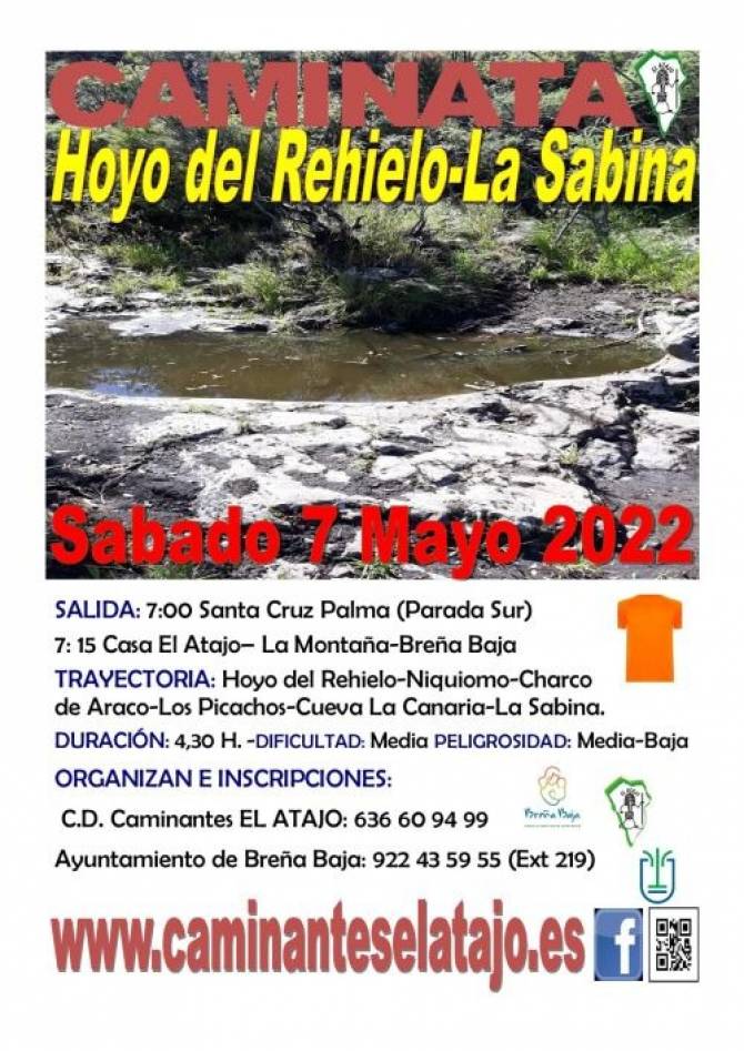 El sábado 7 de mayo, el C. D. de Caminantes "El Atajo" y el Ayuntamiento de Breña Baja organizan, dentro del Programa de Senderismo de Breña Baja, la caminata nº 756: "Hoyo del Rehielo (Breña Baja) - La Sabina (Villa de Mazo)".