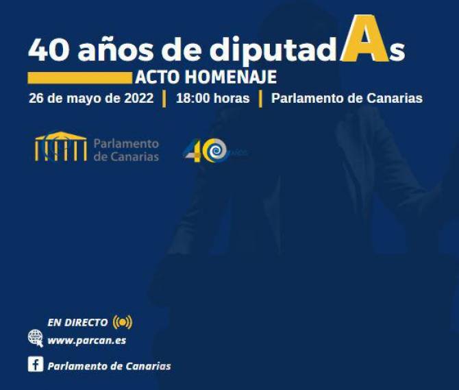 El Parlamento de Canarias rinde homenaje a las 113 diputadas que han ocupado un escaño en la Cámara regional en estos cuarenta años de autogobierno, en un acto que se desarrollará mañana jueves, 26 de mayo, a partir de las 18:00 horas en la Sala Europa de la Cámara regional.