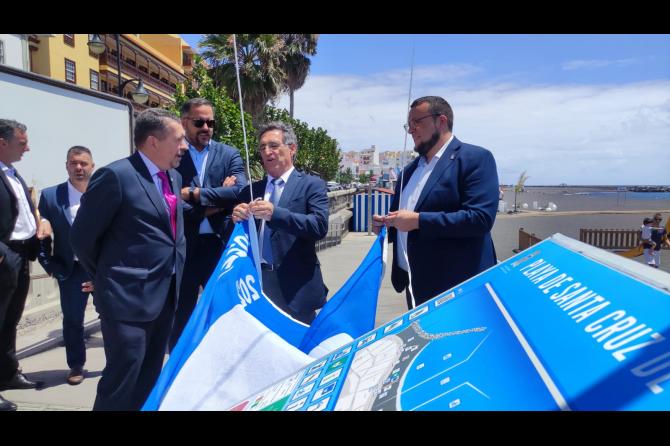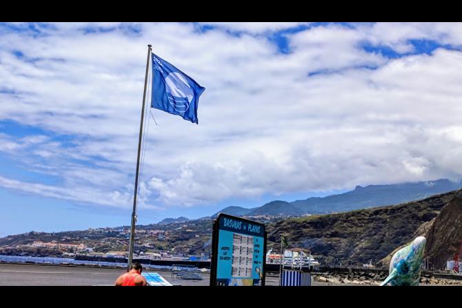 La Bandera Azul ya ondea de nuevo, y por segundo año consecutivo, en la playa de Santa Cruz de La Palma, un distintivo internacional que se concede a aquellas playas y puertos que han superado con éxito los criterios de excelencia en la calidad del agua de baño, así como de la normativa existente para el ocio y disfrute de estos espacios de disfrute colectivo.