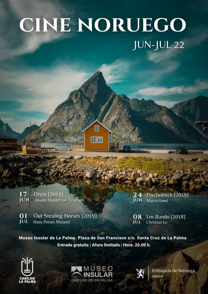 La Consejería de Cultura y Patrimonio del Cabildo de La Palma, que dirige Jovita Monterrey, ha programado un Ciclo de Cine Noruego que se celebrará en el Museo Insular, con la proyección de cuatro títulos, en versión original subtitulada, que comenzarán a las 20.00 horas. La entrada es gratuita hasta completar aforo.