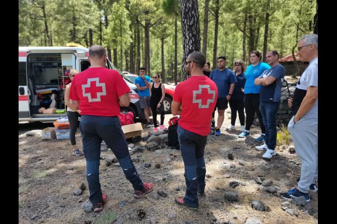 La sugerente y atractiva jornada formativa contó con la sapiencia de los ponentes Besay Franchy, responsable del Equipo de Respuesta Inmediata ante Emergencias (ERIE) de Búsqueda y Salvamento de Medio Terrestre (BSMT) de Cruz Roja en La Palma; y Francisco Ferraz, formador de Cruz Roja y director médico del evento.