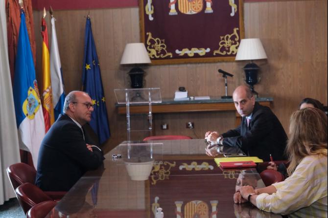 Santa Cruz de La Palma, 21 de junio de 2022.- El delegado del Gobierno en Canarias, Anselmo Pestana, se ha reunido hoy en Santa Cruz de La Palma con el comisionado especial para la Reconstrucción de la isla de La Palma, Héctor Izquierdo. En el encuentro ha participado también la directora insular de la Administración General del Estado en La Palma, Ana de León.