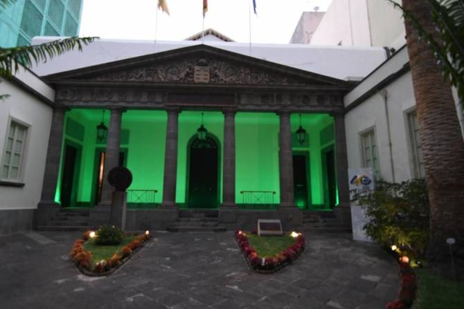 La fachada principal de la sede del Parlamento de Canarias se ilumina de verde estos días con motivo de la conmemoración, este 21 de junio, del Día Mundial de la Esclerosis Lateral Amiotrófica (ELA). El presidente de la Cámara, Gustavo Matos, destaca la importancia de que las instituciones contribuyan en la visibilización, sensibilización y concienciación sobre esta enfermedad que afecta en Canarias a 300 personas. Valora, asimismo, la labor fundamental que desarrollan las asociaciones de ELA, tanto en materia de acompañamiento y asesoramiento de las personas enfermas y sus familiares como en las reivindicaciones que mantienen, entre ellas la necesidad de incrementar la inversión en investigación.