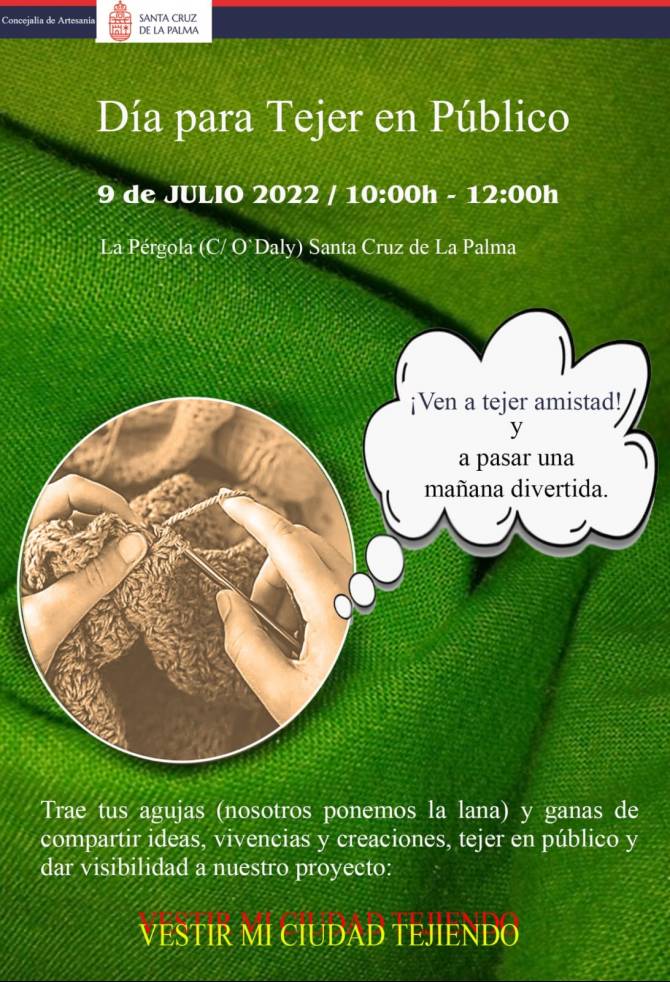 La Pérgola, ubicada en la calle O`Daly de Santa Cruz de La Palma, acogerá esta actividad entre las 10:00 y las 14.00 horas a todas las personas interesadas en participar y que será coordinada por Silvia Teresa Baly, artesana y profesora de ganchillo.