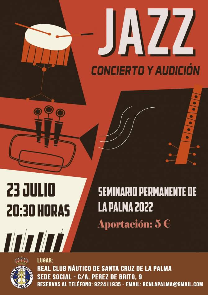 El próximo SÁBADO 23 DE JULIO A LAS 20:30 HORAS se realizará un CONCIERTO Y AUDICIÓN DEL SEMINARIO PERMANENTE DE JAZZ LA PALMA I 2022 en la Sede Social del Real Club Náutico de Santa Cruz de La Palma, como cierre del proyecto formativo cultural impulsado por dicha sociedad. La iniciativa del Seminario Permanente (SP), consiste en la impartición de clases de música e instrumento, el cual se viene realizando los lunes en el Salón Noble de la Sede Social del Real Club Náutico La Palma. El proyecto está coordinado y dirigido por Kike Perdomo, Saxofonista, Compositor, Productor Musical e Ingeniero de Sonido, siendo uno de los músicos más talentosos e inquietos que ha creado el archipiélago canario.