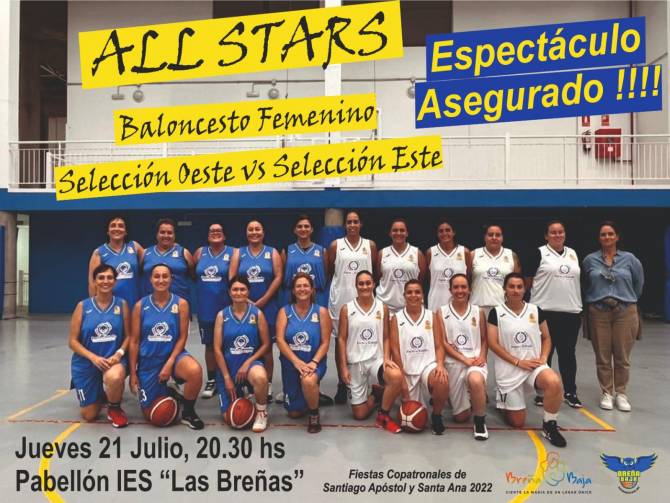 El jueves 21 de julio a las 20.30 hs en el Pabellón del IES "Las Breñas" tendrá lugar un partido de All Stars de baloncesto femenino insular entre las selecciones del oeste y este de la isla.