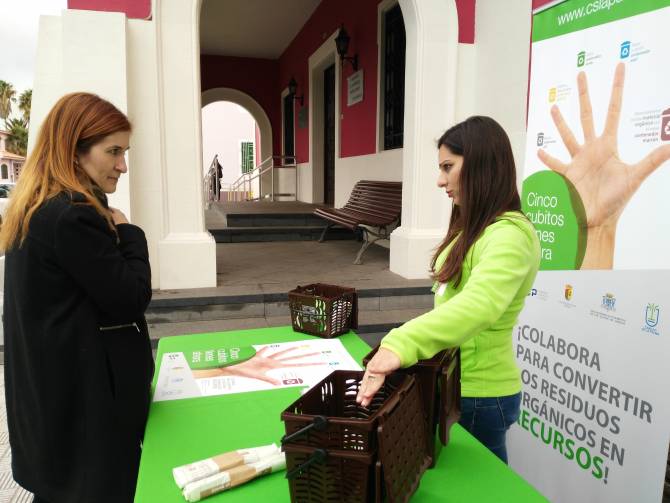 El Consorcio de Servicios de La Palma ha retomado hoy el stand informativo sobre la separación selectiva en el atrio del Ayuntamiento de El Paso con el objetivo de reforzar la campaña en el municipio que hace un año se convirtió en el primero de Canarias en implantar la recogida de biorresiduos.