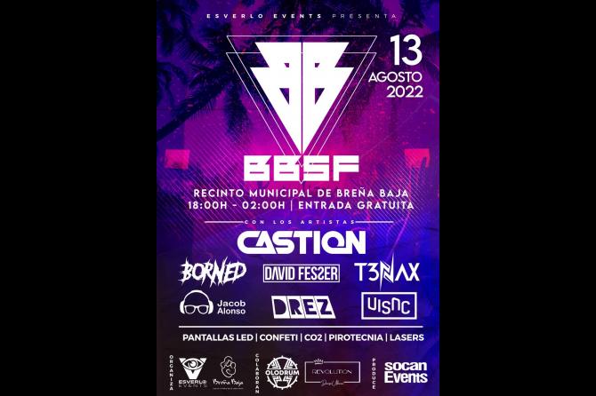 Este sábado, 13 de agosto, tendrá lugar el Breña Baja Summer Fest (BBSF) un festival ya convertido en cita obligada cada verano en el municipio breñsuco para los y las amantes de la música electrónica, bajo la organización de la Asociación Juvenil y Cultural Esverlo Events y el Ayuntamiento de Breña Baja, y la colaboración de los colectivos Olodrum y Revolution Dance, además de la producción de Soca Events.
