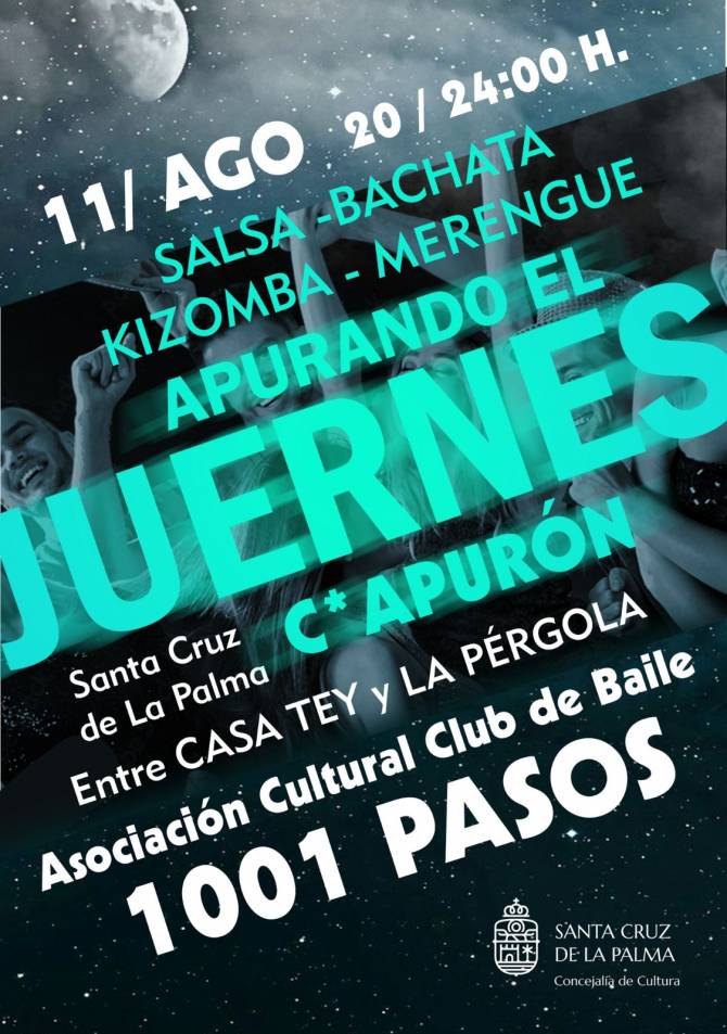 La calle Apurón se convertirá en un escenario al aire libre las tardes de los jueves 11, 18 y 25 de agosto para disfrutar de actuaciones musicales y de baile a cargo de la Asociación Cultural Club de Baile 1001 Pasos, Asociación Cultural Pasión Tango La Palma, Pimientas Selectoras y Fran Ramos