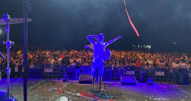 El Vega Life es creador de la ‘Rumbita Canaria’, conocido por su música y por su peculiar forma de vida natural y positiva que emanan de sus composiciones, que supo transmitir durante las casi dos horas de concierto a todo el público presente llegado de todos los municipios de la Isla.