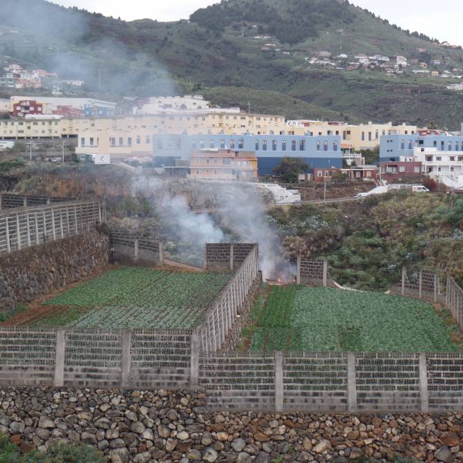El fuego, que comenzó por causas desconocidas, afectó a una superficie de pasto entre unas huertas entre el Lomo Machado y Lomo Centro.