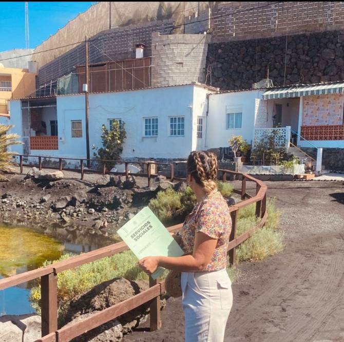 Concepción explica que este servicio lo están prestando, por ahora, 4 profesionales, “concretamente 2 Psicólogos y 2 trabajadores Sociales, que se dividen en parejas, 1 trabajador Social y 1 Psicólogo, y todos los martes y jueves tratan de prestar apoyo y ayudar a aquellos vecinos, que tuvieron que abandonar sus casas durante la emergencia volcánica, y que ahora están regresando a ellas”. Además, confirma que durante estas primeras semanas una de las parejas ha comenzado a trabajar por la zona de Las Machas, la más próxima al volcán, mientras que la segunda pareja lo está haciendo por la zona de El Remo.