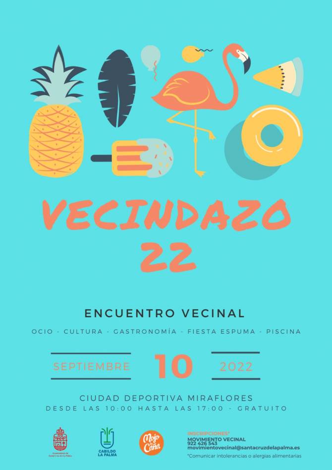 Esta iniciativa, denominada 'Vecindazo 22', es de carácter gratuito y busca promover la convivencia y el disfrute de actividades entre la población de Santa Cruz de La Palma donde se podrá participar en actividades ocio, juegos, talleres, piscina, almuerzo comunitario y música, entre las 10:00 y las 17:00 horas.