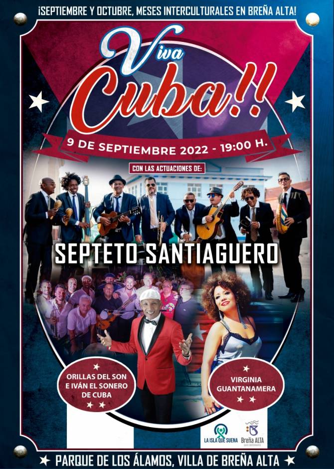El Parque de Los Álamos, en Breña Alta, acoge este viernes, 9 de septiembre, a partir de las 19:00 horas, la celebración del espectáculo Viva Cuba!!, contando con la participación del actual máximo exponente de la música tradicional cubana a nivel internacional, el Septeto Santiaguero.