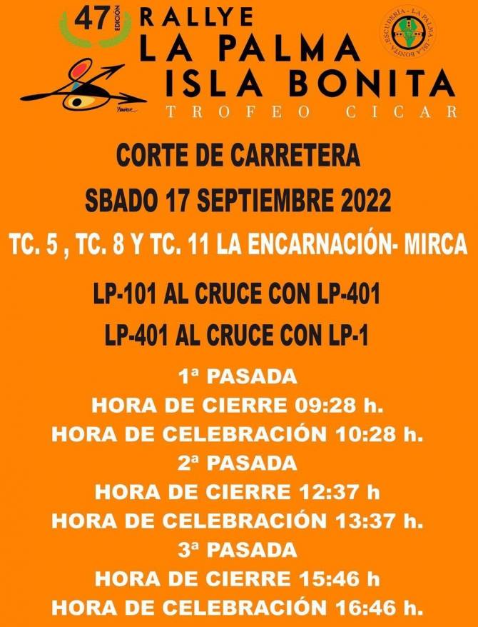 El sábado, día de la prueba, la circulación se verá afectada en la carretera de Las Nieves (cruce con Calle Poggio y Monteverde) y llegada en carretera de Mirca (LP-4) a la altura del cruce con la carretera General del Norte (LP-1).