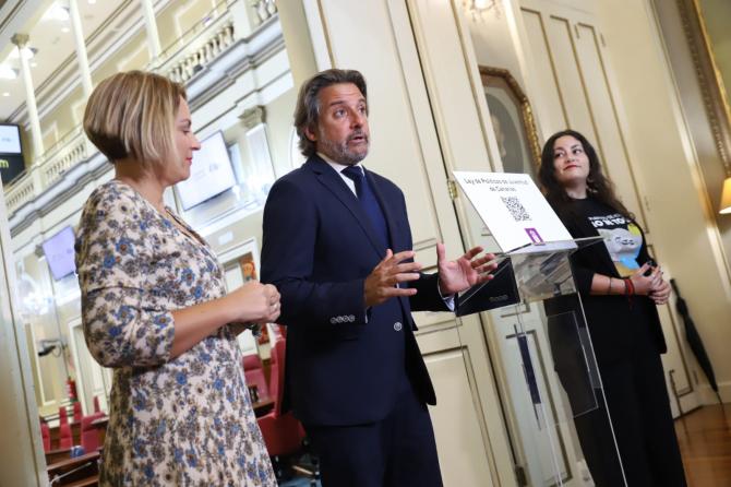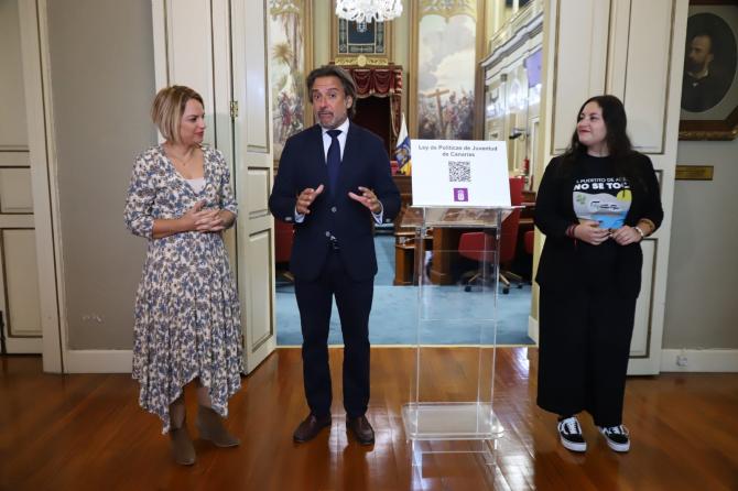 El presidente del Parlamento de Canarias, Gustavo Matos, recibió este martes el proyecto de Ley de Políticas de Juventud de manos de la consejera de Derechos Sociales, Igualdad, Diversidad y Juventud del Gobierno de Canarias, Noemí Santana. El proyecto fue aprobado en Consejo de Gobierno en julio pasado e inicia ahora su trámite parlamentario. “Es una buena noticia comprobar que está siendo la legislatura con mayor actividad en estos cuarenta años de Parlamento”, expresó Matos, que valoró que el Gobierno haya llevado a la Cámara esta ley. Santana estuvo acompañada por la directora general de Juventud, Laura Fuentes.