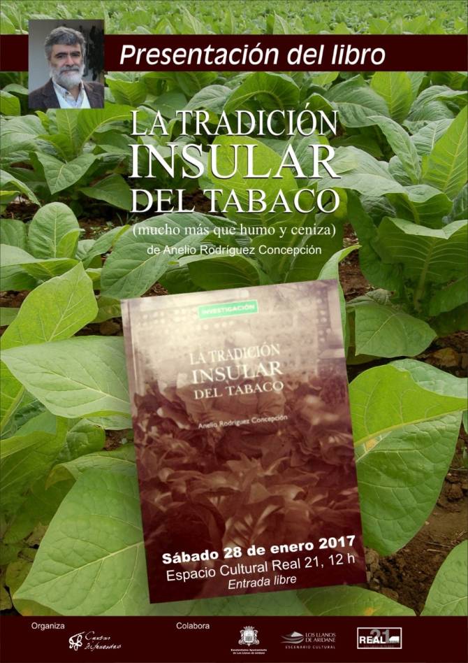 El espacio Cultural Real 21 acoge este sábado, día 28 de enero, a las 12:00 horas la presentación del libro de Anelio Rodríguez Concepción “La tradición insular del tabaco” un amplio volumen de 400 páginas de extensión en el que el autor desgrana la historia, el cultivo, el proceso de elaboración de los puros y al que incorpora el léxico tabaquero.
