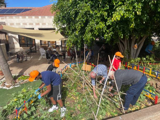 El proyecto que comenzó en el curso 2017-2018, ha ido creciendo con el paso de los cursos, estableciéndose actividades mensuales de intercambio intergeneracional que van desde sesiones de gimnasia pasiva, talleres de manualidades, baile, teatro,…, y ahora se ve completado con la parte medioambiental, a través del cultivo de frutas y hortalizas que en el momento de su recolecta compartirán pequeños y mayores.